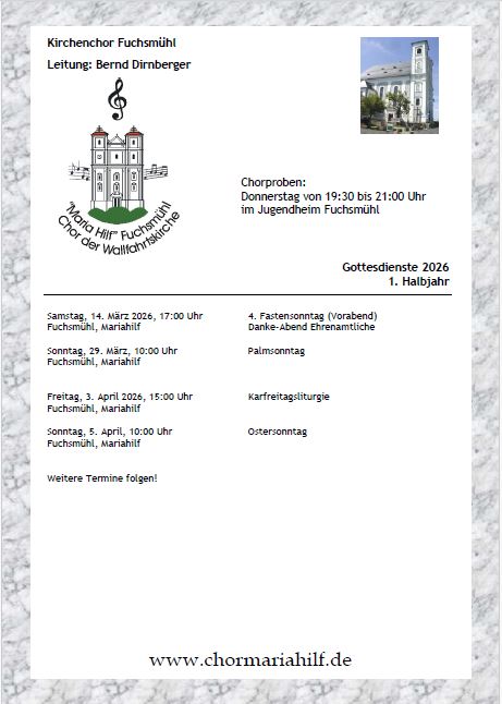 Aktueller Pfarrbrief mit Gottesdienstordnung Fuchsmühl/Friedenfels; Pfarrbüro-Infos |
