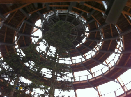 bis hoch auf den 44 Meter hohen Baumturm am