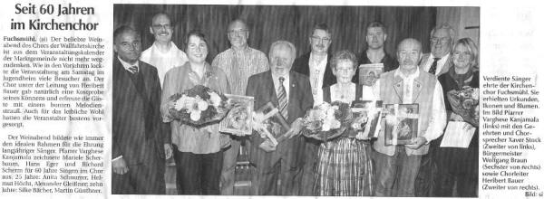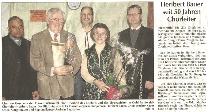 Heribert Bauer bereits 20 Jahre Chorleiter in Fuchsmühl