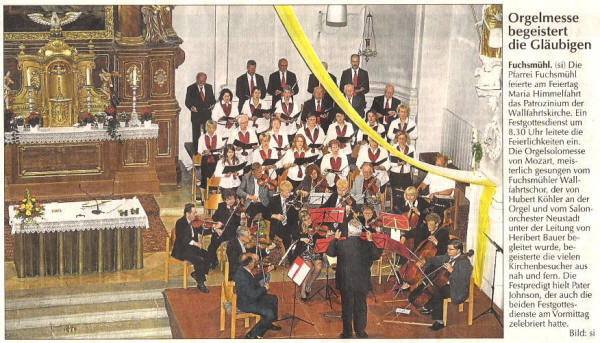 Musikalische Gestaltung der Liturgie: "Missa in B" (K.V. 275) und erstmals "Te Deum" (K.V. 141) von Wolfgang Amadeus Mozart; "Halleluja" (aus: Der Messias) von Georg Friedrich Händel;"Toccata C-Dur" (BMV 564) von Johann Sebastian Bach Mit Mitgliedern des Salonorchesters Neustadt/Waldnaab, dem Chor der Wallfahrtskirche und dem Organisten Hubert Köhler auf der Orgelempore; Gesamtleitung: Werner Fritsch