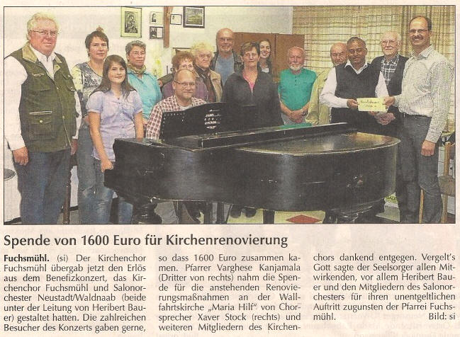 Erlös des Benefizkonzertes an unseren